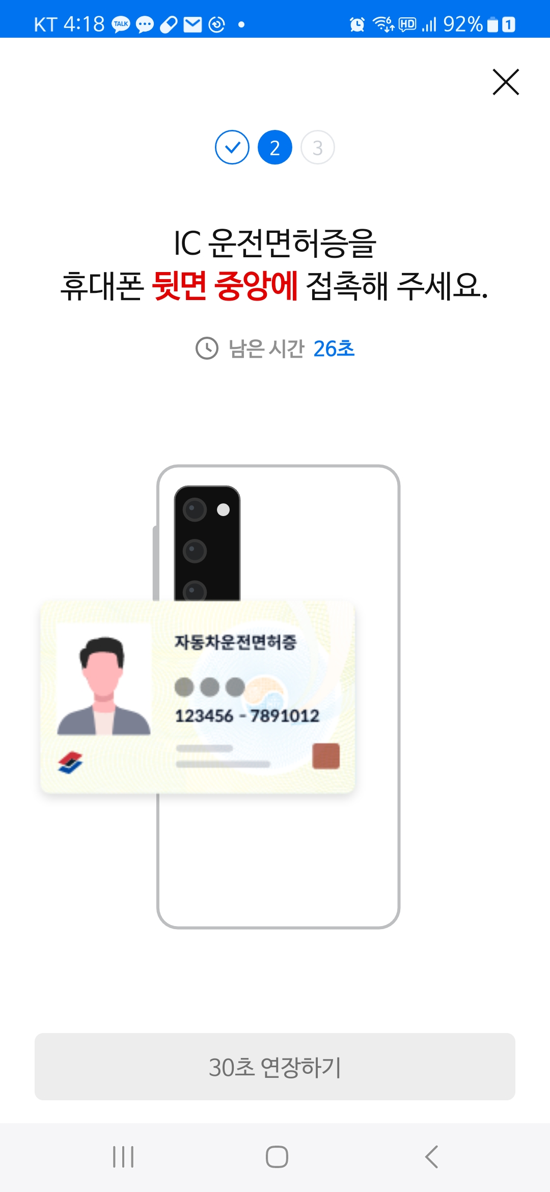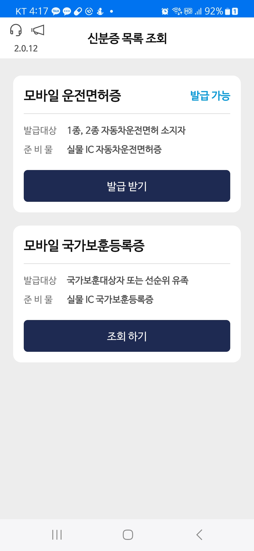 모바일 신분증 앱을 실행하여 지문인식 등 생체 인증을 하게되면 모바일 운전면허증을 확인할 수 있습니다.