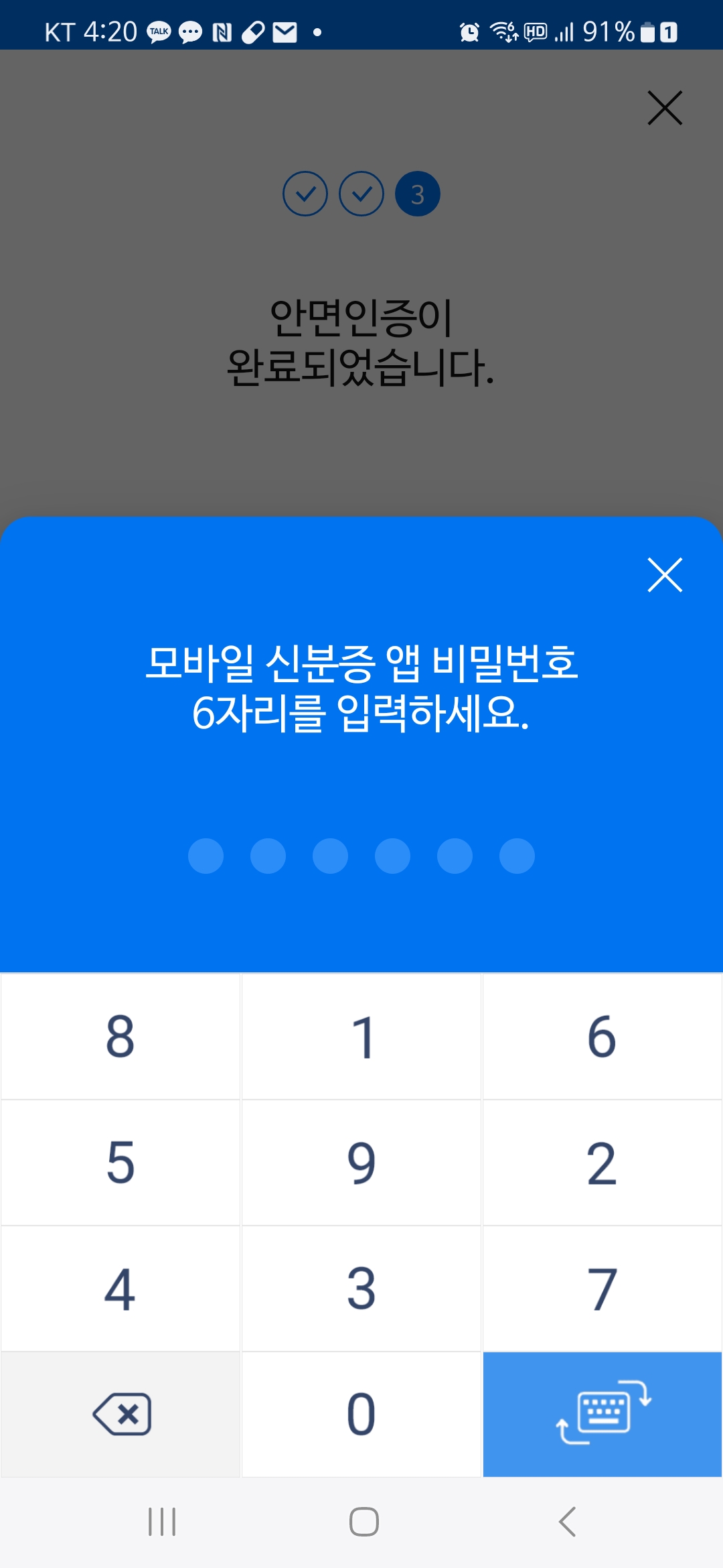 그 비밀번호를 모바일 운전면허증 발급 시 입력하면 됩니다.