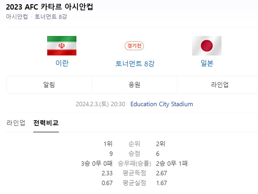 이번 2023 AFC 카타르 아시안컵의 강력한 우승 후보인 이란과 일본의 8강전 경기는 tvN스포츠, 쿠팡플레이, 티빙에서 중계됩니다.