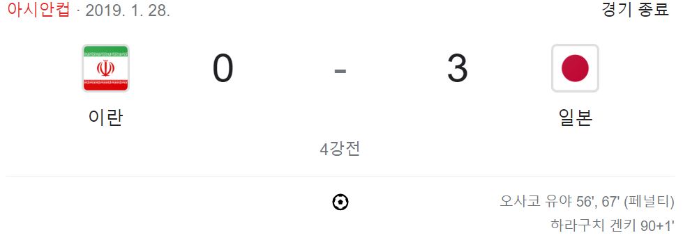 1. 2019년 아시안컵 이란vs일본 4강전 경기 결과
