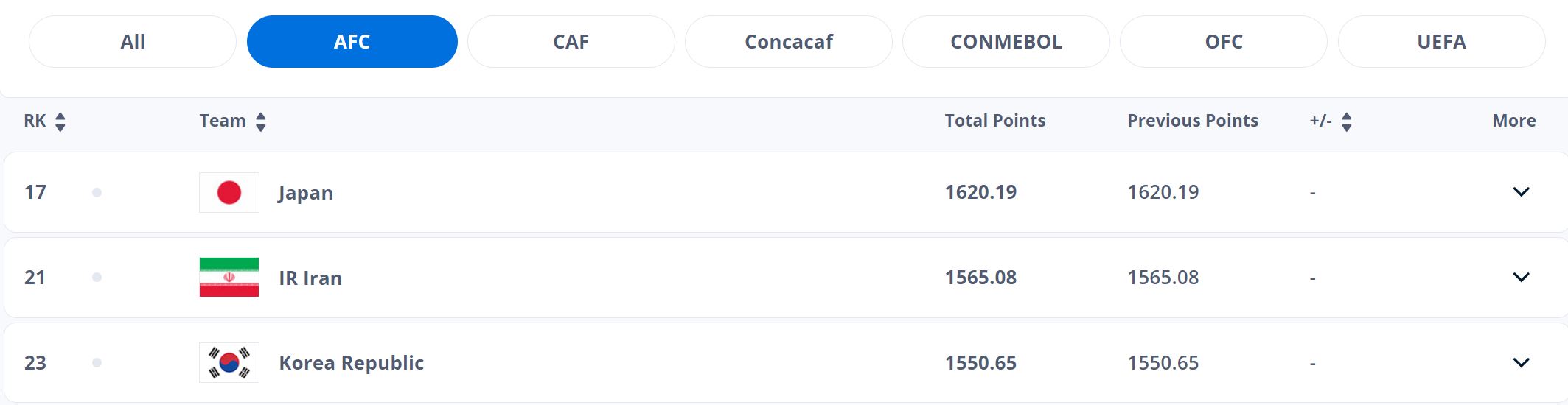 피파랭킹은 일본이 17위, 이란이 21위입니다. 참고로 대한민국은 23위로 이들 나라와 비슷한 수준입니다.