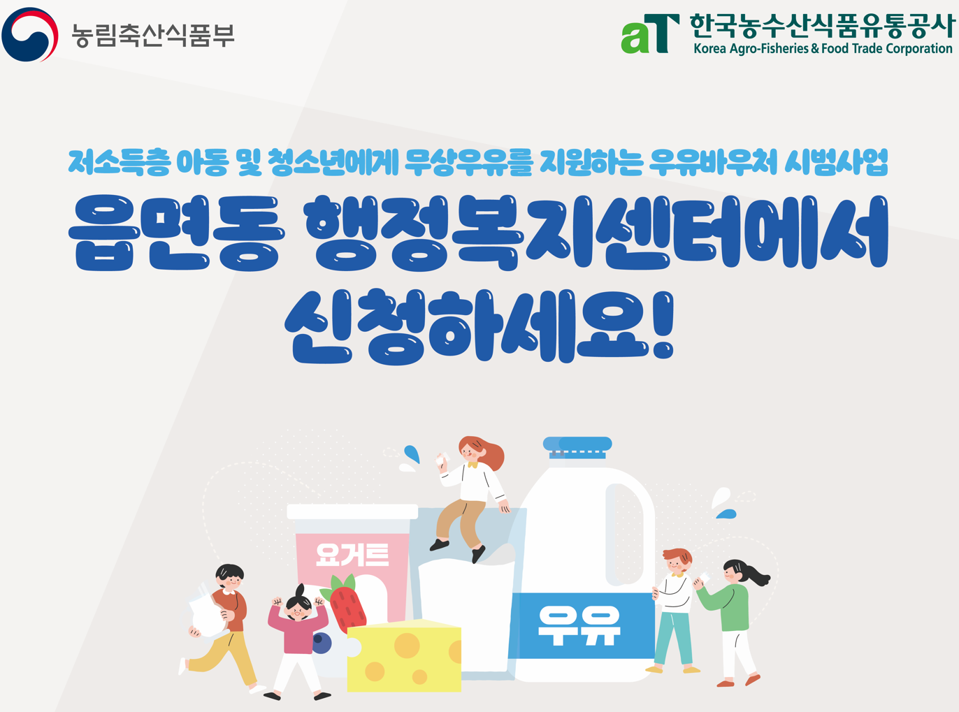 학교우유급식(무상) 사업과 마찬가지로 성장기 학생들에게 필요한 영양소 공급 등을 통한 건강 유지·증진 등을 위해 농림축산식품부에서 운영하는 사업으로 기존 학교에서 우유를 공급받는 대신 우유 바우처(카드)로 수혜자가 원하는 제품(흰 우유, 가공유, 유제품 등)을 마시고 싶을 때 직접 사먹을 수 있도록 월 15,000원을 지원하는 사업입니다.